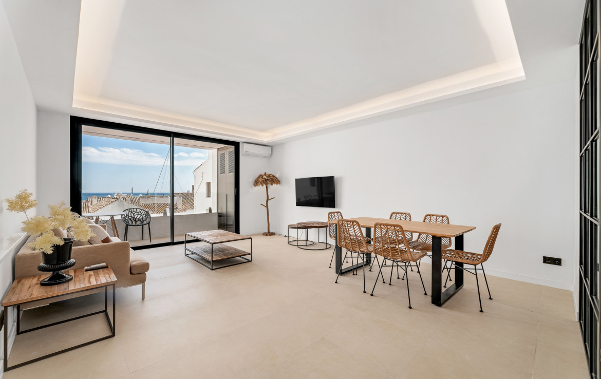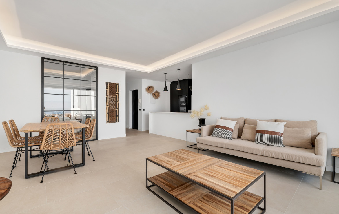 This fully renovated apartment offers a sophisticated base from which to experience this iconic neighbourhood. The home features two spacious bedrooms and two modern bathrooms, ideal for couples or small families seeking long‑term rental. A fully fitted kitchen comes equipped with premium appliances and sleek cabinetry, perfect for preparing meals before relaxing in the open‑plan living and dining area. Floor‑to‑ceiling glass doors lead directly onto a private terrace with panoramic sea views, seamlessly blending indoor and outdoor living and allowing you to enjoy the coastal scenery throughout the year.