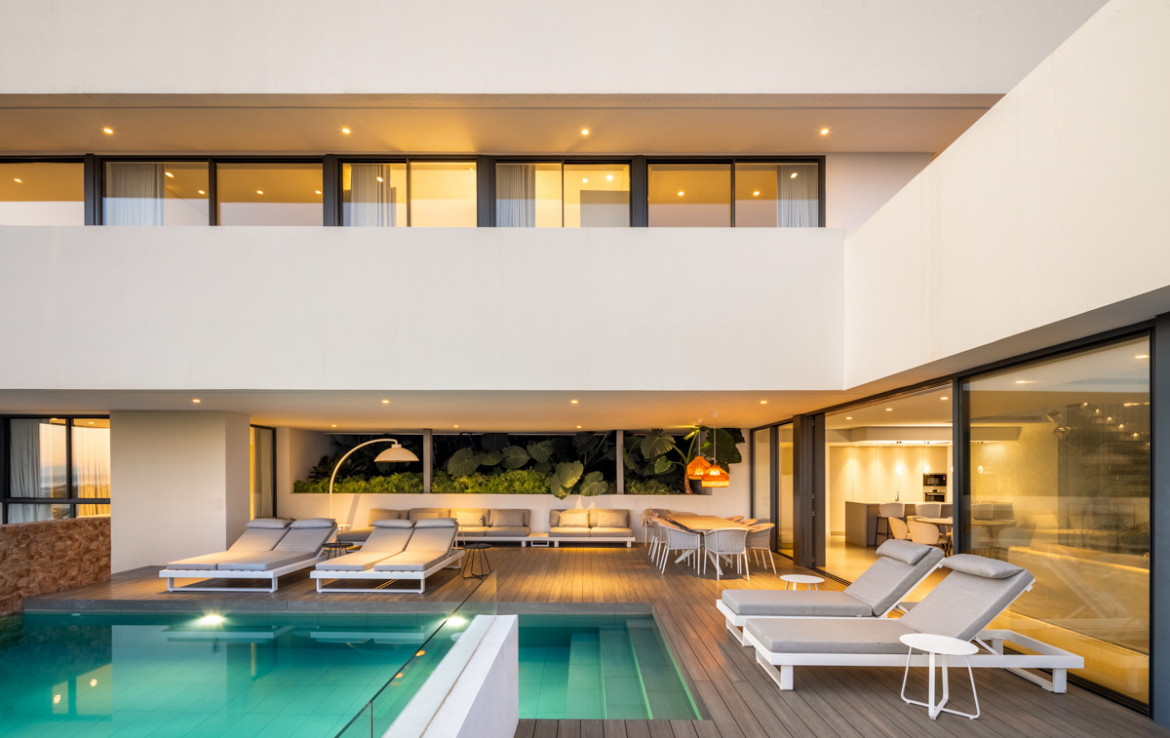 - Outdoor Areas: Private year‑round pool, sun terraces, chill‑out zones, al‑fresco dining