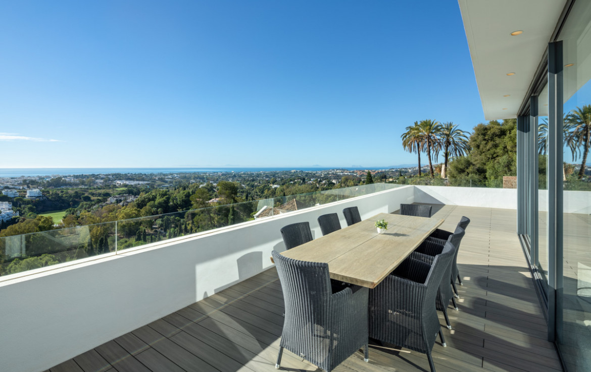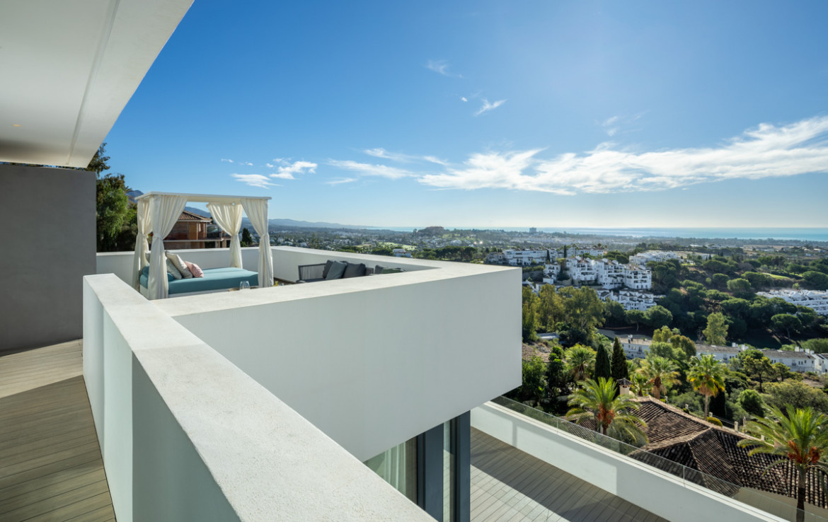 Discover this spectacular modern villa set within the prestigious gated community of El Herrojo Alto in La Quinta, Marbella. Occupying an elevated plot, this luxury property boasts uninterrupted panoramic sea views that stretch along the entire coastline, from the glistening waters of the Mediterranean to the distant silhouettes of Gibraltar and the North African coast.
