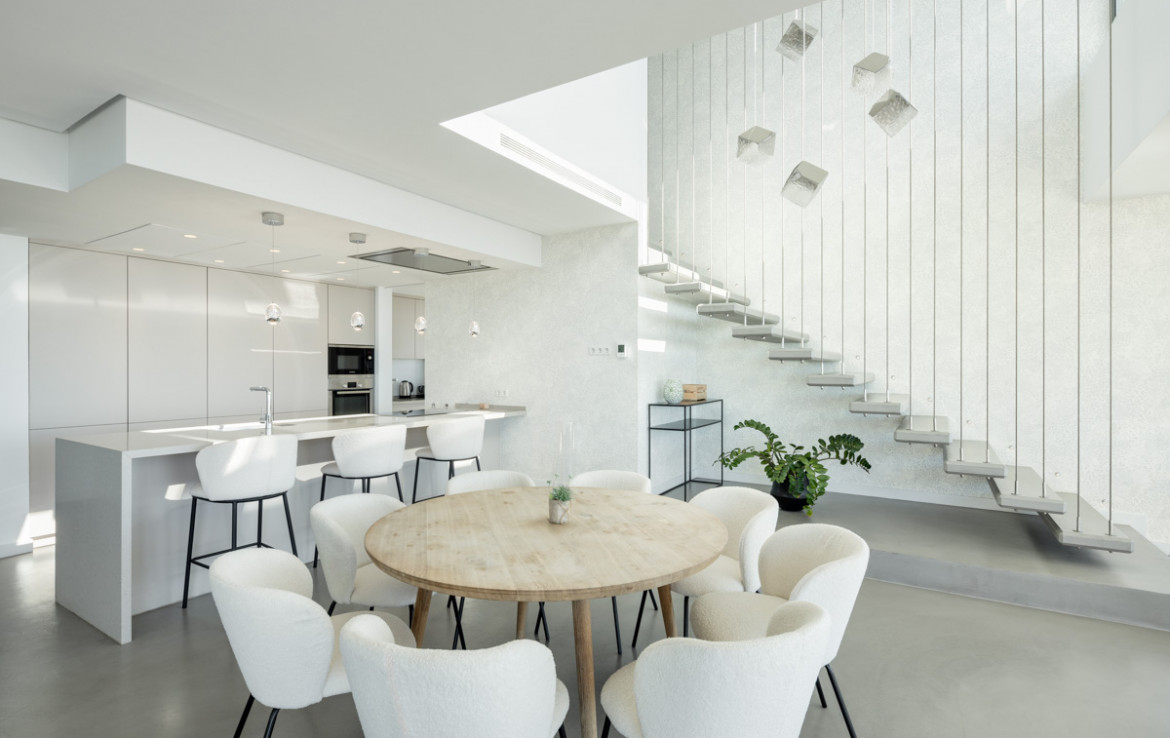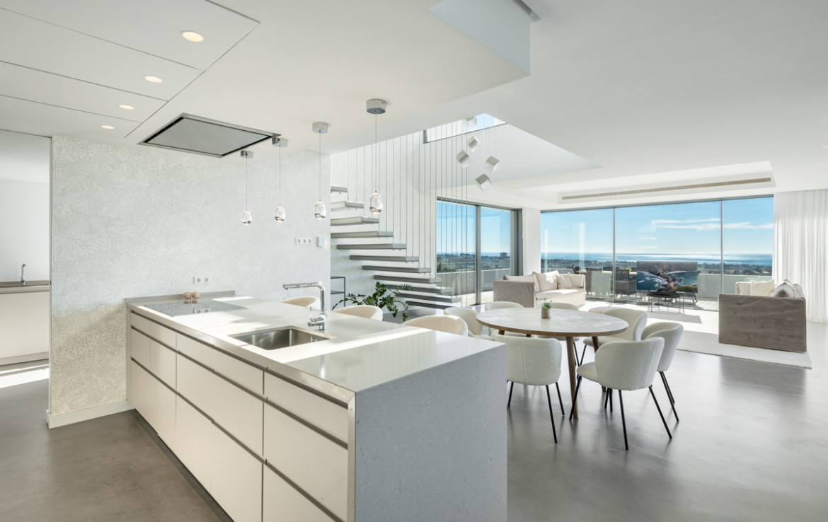 Designed for the discerning buyer, Herrojo 88 seamlessly blends contemporary architecture with comfortable living. The open‑plan layout connects spacious living and dining areas, creating a natural flow perfect for entertaining. Floor‑to‑ceiling glass sliding doors open onto expansive terraces, maximizing the indoor/outdoor lifestyle and framing the spectacular sea views from every corner.