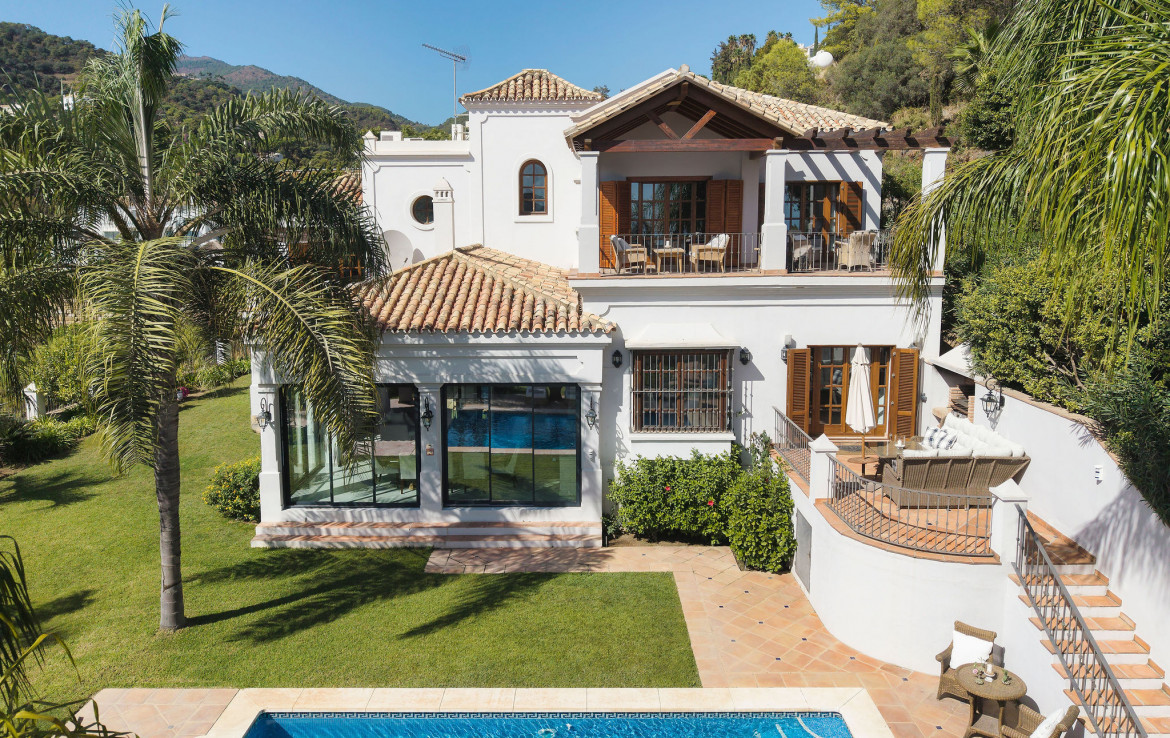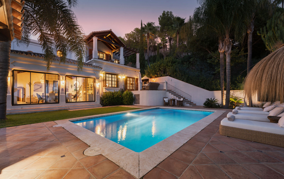 Villa Palma is an exceptional fully renovated luxury villa for sale in the prestigious gated community of El Madroñal, Benahavís—one of the Costa del Sol’s most exclusive residential enclaves. Combining timeless Andalusian charm with carefully executed contemporary upgrades, this remarkable residence offers 531 m² of elegant living space across two beautifully designed floors. Completed in 2024, the renovation enhances every area of the home, delivering a refined lifestyle defined by privacy, panoramic views, and seamless indoor–outdoor living, all just minutes from Marbella, Puerto Banús, and the beaches.